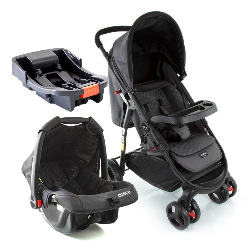O conjunto Travel System Nexus TRIO da Cosco inclui além do carrinho, o bebê conforto Wizz e a praticidade da base veicular, para que a instalação no carro seja feita da forma fácil para os pais e segura para o bebê. Rodas grandes, estável para dirigir, múltiplas posições do assento, incluindo o modo totalmente deitado, como um berço, ainda permite levantar o apoio para os pés, formando um ambiente mais protegido e acolhedor, perfeito para o recém-nascido.