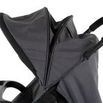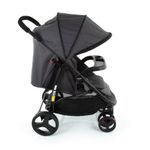 A capota é ampla, com proteção UV30+ e pode ser estendida para aumentar o conforto do bebê nos dias ensolarados, além de ter visor e bolso extra para pequenos objetos. A bandeja possui porta-copos e um compartimento para livrinho ou celular, para divertir e distrair o bebê.