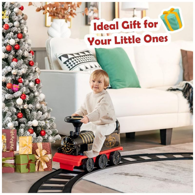 Feito de PP resistente e aço, este trem elétrico com trilhos é durável e estável para capacidade máxima de peso 25 kg. Este passeio de trem com trilhos é um presente ideal para meninos ou meninas maiores de 3 anos, seja para aniversário, Natal ou qualquer outra festa.