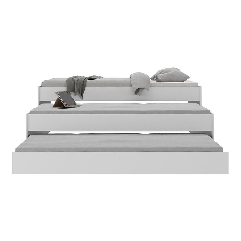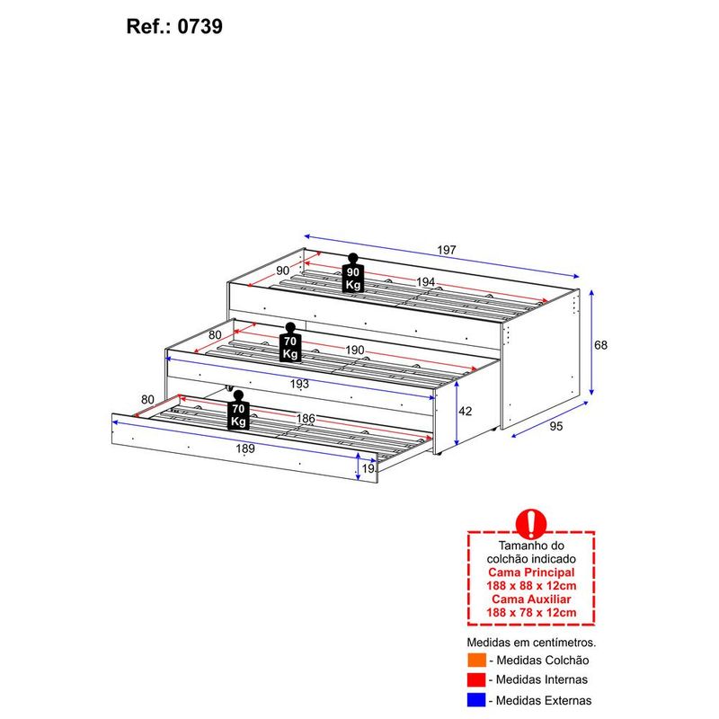A Tricama para colchão 88 x 188 cm Multimóveis é a solução perfeita para otimizar o espaço do seu quarto e garantir conforto para toda a família. Produzida em MDP, esta peça oferece resistência e durabilidade, além de um acabamento impecável em pintura UV que proporciona um toque sofisticado ao ambiente. A cama principal suporta até 90kg, enquanto as duas camas auxiliares comportam até 70kg cada uma - perfeitas para acomodar visitas ou irmãos que dividem o mesmo quarto. Além disso, a cama auxiliar maior possui rodízios que facilitam a sua movimentação. NÃO acompanha colchões (tamanho indicado de colchões: Principal: 88 x 188 cm | Auxiliares: 78 x 188 cm).