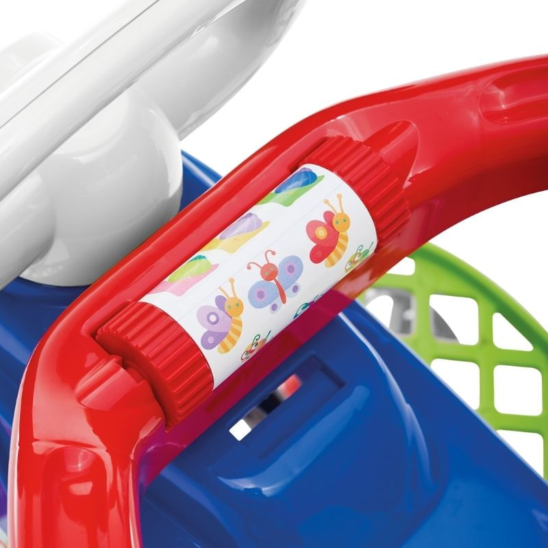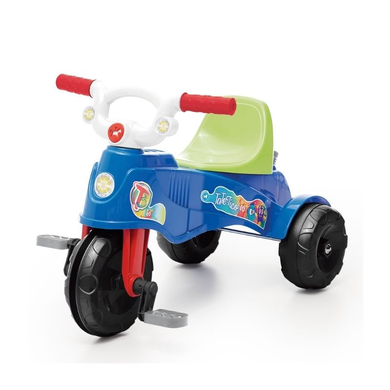 Prático, confortável e divertido! O Tatetico é daqueles triciclos 2 em 1 despojados e práticos, que acompanha as fases de crescimento da criança com conforto e segurança. Na primeira fase, o apoio de pés mantém as perninhas do bebê confortavelmente apoiadas, e a estabilidade do corpo é garantida pelo aro de proteção, ambos podendo ser removidos. Já na fase mais independente do bebê, retira-se o apoio de pés e o aro de proteção. Pensando nisso, o Tatetico foi projetado com roda dianteira acompanhada de borracha para evitar derrapar, legal né? Calesita, transforma passeios em histórias!