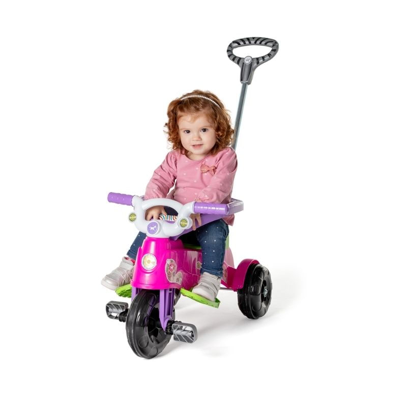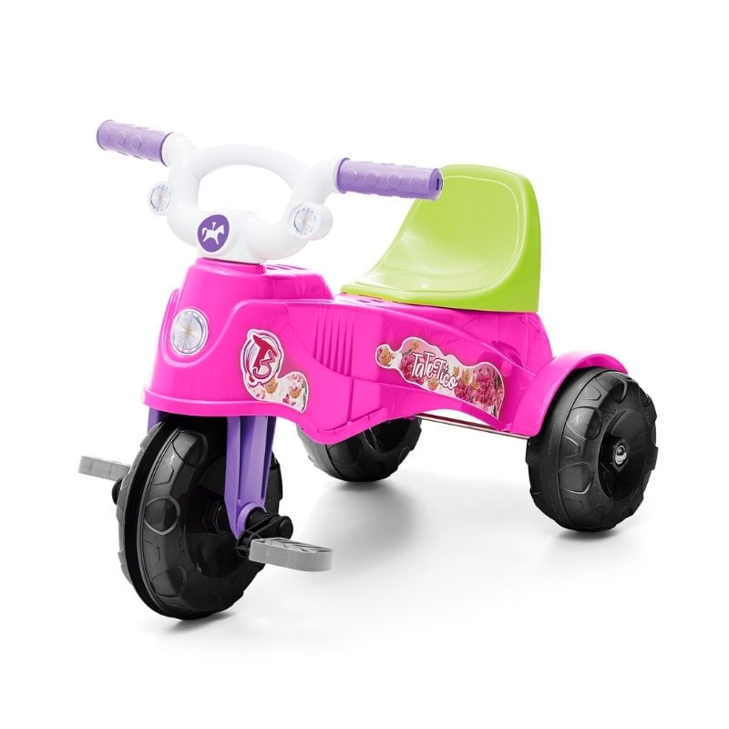 Prático, confortável e divertido! O Tatetico é daqueles triciclos 2 em 1 despojados e práticos, que acompanha as fases de crescimento da criança com conforto e segurança. Na primeira fase, o apoio de pés mantém as perninhas do bebê confortavelmente apoiadas, e a estabilidade do corpo é garantida pelo aro de proteção, ambos podendo ser removidos. Já na fase mais independente do bebê, retira-se o apoio de pés e o aro de proteção. Pensando nisso, o Tatetico foi projetado com roda dianteira acompanhada de borracha para evitar derrapar, legal né? Calesita, transforma passeios em histórias!