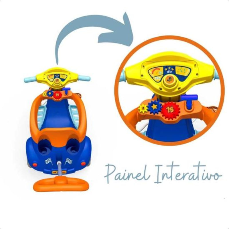 Triciclo Blue Race é ideal para as crianças de 1 ano terem uma maior segurança na hora de passear. Este triciclo pode ser configurado de três maneiras diferentes – triciclo para empurrar, triciclo assistido e triciclo independente. Conta com um cercado de proteção e há, também, a possibilidade de apoiarem os pés no apoio de pés, que assim como o cercado, também é removível. Já para as crianças que ainda não sabem pedalar e que vão precisar do empurrãozinho da mamãe, basta colocar o empurrador no triciclo, que pode ser removido assim que a criança aprender a pedalar. E se as crianças e as mamães quiserem transportar mamadeiras e garrafas tem suporte para elas, assim como um painel interativo. Suporta até 30kg.