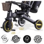 BABYMINI VEÍCULOSTRICICLOTriciclo Infantil com Cesta, Mochila de Viagem e Bolsa para os Pais para Crianças de 1 a 5 Anos, NewtronX, Preto