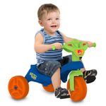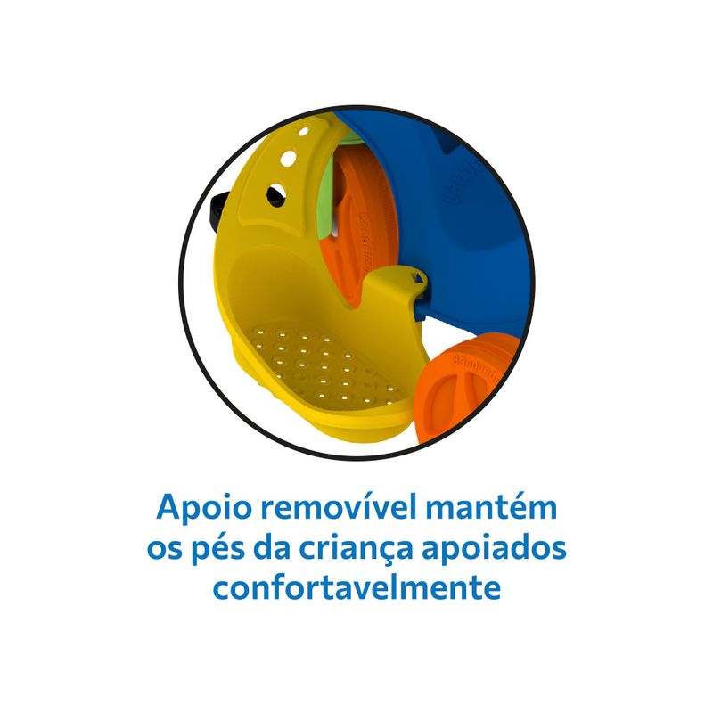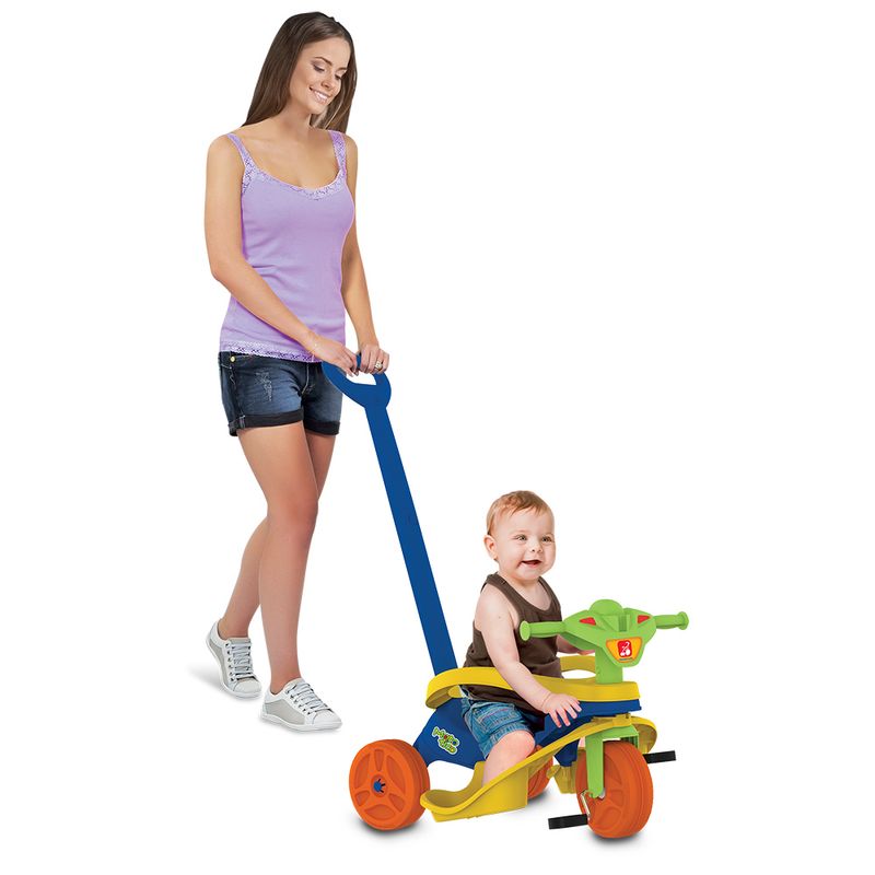 FUNÇÃO PASSEIO: O adulto utiliza a haste (não direcionável) para conduzir o triciclo. FUNÇÃO PEDAL: Permite à criança brincar livremente como um triciclo convencional. Basta remover a haste, o cercado de proteção e o apoio dos pés. Haste removível. Novo Apoio para os pés removível: Mantém os pés do bebê apoiados confortavelmente. Assento anatômico confortável, com baixa distância do solo e altura ideal para a criança subir e descer de forma fácil e segura. Cercado de proteção removível. Novo sistema de rodas, mais praticidade na montagem. Idade: +12 meses. Peso máximo suportado: 19kg. Número do registro : 003834/2021 OCP:0061.