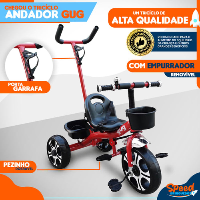 TRICICLO PARA CRIANÇA COM ALÇA DE EMPURRAR VERMELHA SHINY TOYS