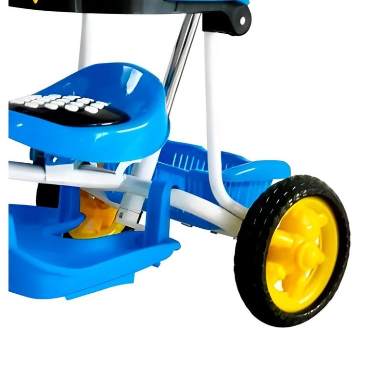 O Triciclo Passeio Divertido Ursinho é ideal para passeios! Material resistente, possui cercado e apoio de pés, trazendo segurança e conforto para a criançada! Com som e luz para o passeio ficar mais divertido. Vem com cesto para carregar brinquedinhos e capota para proteger a criança do sol. Suporta no máximo 25kg.\n\nIdade recomendada:2-4 anos;Composição/Material:Metal;Funciona com pilhas:Sim;Brinquedo com luz:Sim;Brinquedo com som:Não;Dimensões:21,7x59x44 cm;Peso:5,706 kg;Código de Barras:7899205955801;Garantia do Fornecedor:3 Meses contra defeito de fabricação;
