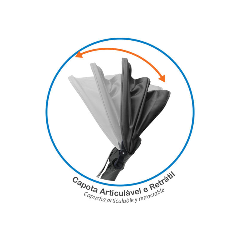 Rodas em E.V.A que facilitam a condução do carrinho e proporcionam um deslocamento suave e sem ruído.