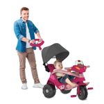 FUNÇÃO PASSEIO: O adulto utiliza a haste direcionável para conduzir o triciclo. Basta destravar o dispositivo de roda livre, colocar o cercado de proteção e o apoio dos pés.