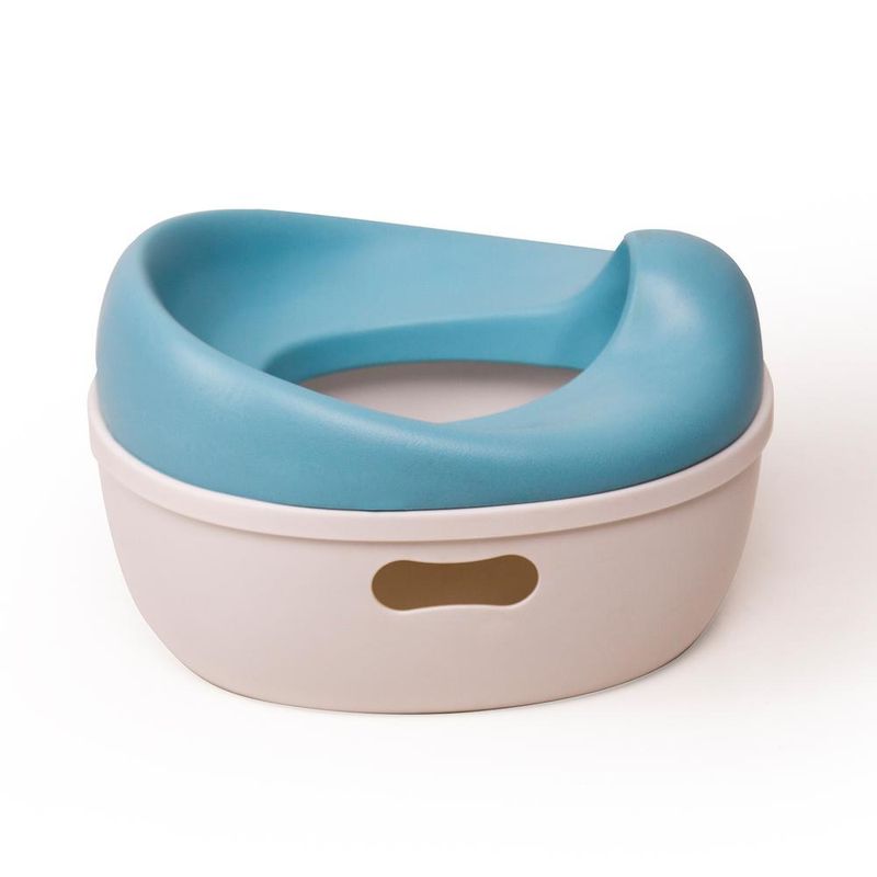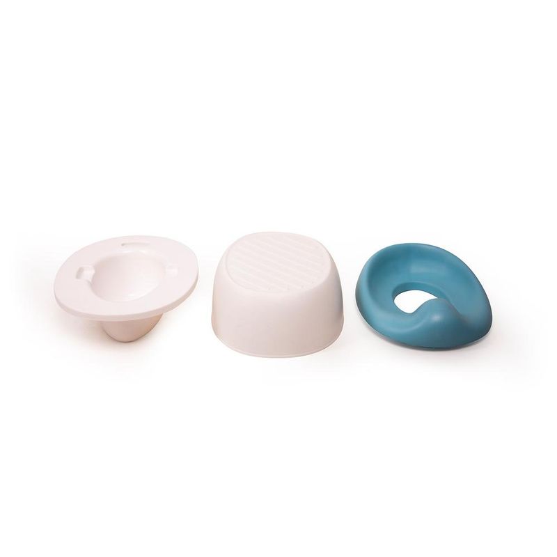 O formato é ergonômico do assento em material macio, com curva antirrespingo e ele conta com compartimento higiênico removível, facilitando a limpeza. Feito em material resistente, acompanha o crescimento da criança, transformando-se em um assento redutor e degrau, que, quando são usados em conjunto, proporcionam segurança e conforto para a criança, durante a fase de uso já diretamente no vaso sanitário.