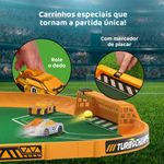 O playset acompanha 2 carrinhos exclusivos, 1 campo com gols e bola, tudo pronto para jogadas emocionantes.