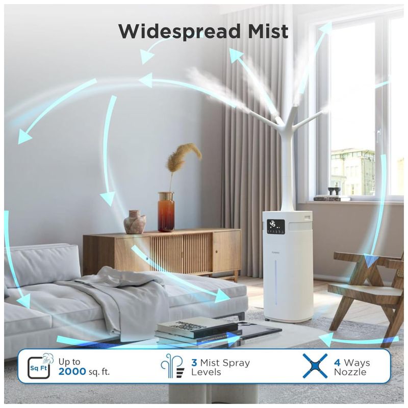 O umidificador Greenland GLH20 é ideal para combater o ar seco em espaços de até 185m2. Equipado com 4 atomizadores e um potente ventilador, ele produz até 1000 ml de névoa por hora, proporcionando umidade que suaviza a pele, acalma as vias aéreas secas e previne o acúmulo de eletricidade estática.