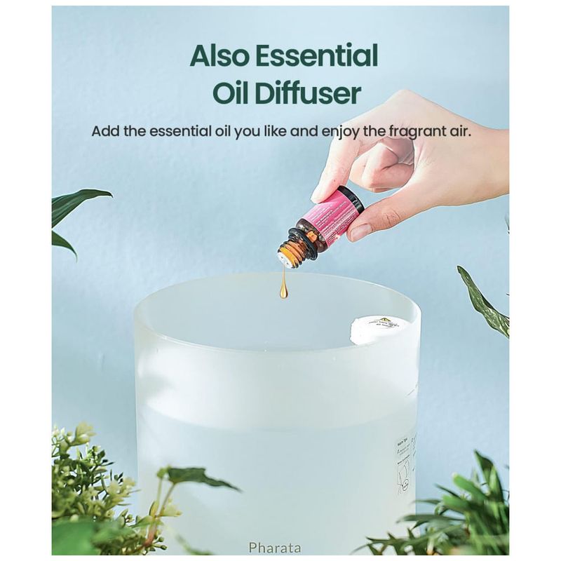 UMIDIFICADOR E DIFUSOR 2 EM 1 Este umidificador de ar 2 em 1 com difusor de óleo essencial proporciona conforto e aconchego. Adicione seus óleos essenciais favoritos ao tanque para criar um spa em casa perfumado e gire o bico de 360 para liberar a névoa em qualquer direção