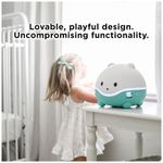 OPÇÕES DE LUZ NOTURNA CATIVEIRAS: Personalize o ambiente com uma variedade de 7 tons cativantes de luz noturna. Deixe a imaginação fluir com a mudança de cores ou escolha uma cor única que se alinhe com a personalidade do seu filho. O WISPI transforma noites comuns em experiências extraordinárias, oferecendo um toque mágico ao quarto.