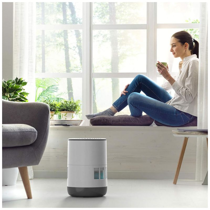 UMIDIFICAÇÃO DE QUARTO INTEIRO Nosso umidificador evaporativo de economia de energia usa tecnologia de ventoinha para capturar, resfriar e umidificar o ar em ambientes de até 46 m2, tornando o um ótimo umidificador de ambiente médio e grande para quarto, sala de estar e muito mais.