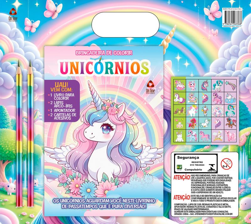 -Prepare-se para uma jornada mágica com "Unicórnios Brincadeira de Colorir"! Este kit encantador traz páginas repletas de unicórnios prontos para ganhar cores vibrantes! Com os lápis de cor arco-íris, você pode criar suas próprias combinações de cores, acompanha também apontador e uma cartela de adesivos divertidos para deixar suas criações ainda mais especiais. Entre nessa aventura e solte sua imaginação no mundo dos unicórnios!