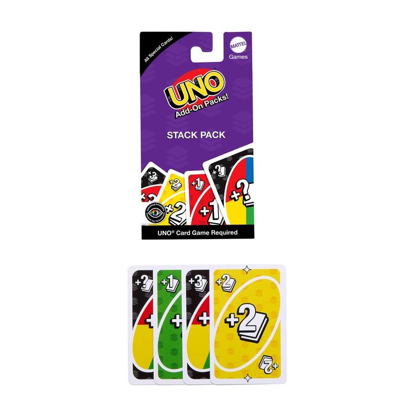 Uno Add-On Packs! Marca do Produto: Mattel Adicione as cartas especiais destes pacotes a um baralho clássico de UNO e a diversão começa! Há um pacote em que todas as cartas alteram o fluxo do jogo, um em que os jogadores acumulam penalidades sobre as outras, outro em que os jogadores trocam cartas e um em que os jogadores podem descartar várias cartas em um turno! Os pacotes de cartas são um presente fantástico para fãs de UNO e entusiastas de jogos de cartas a partir de 7 anos. Cada pacote é vendido separadamente, sujeito à disponibilidade.