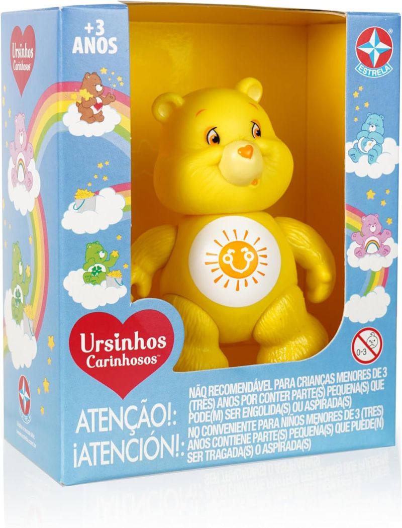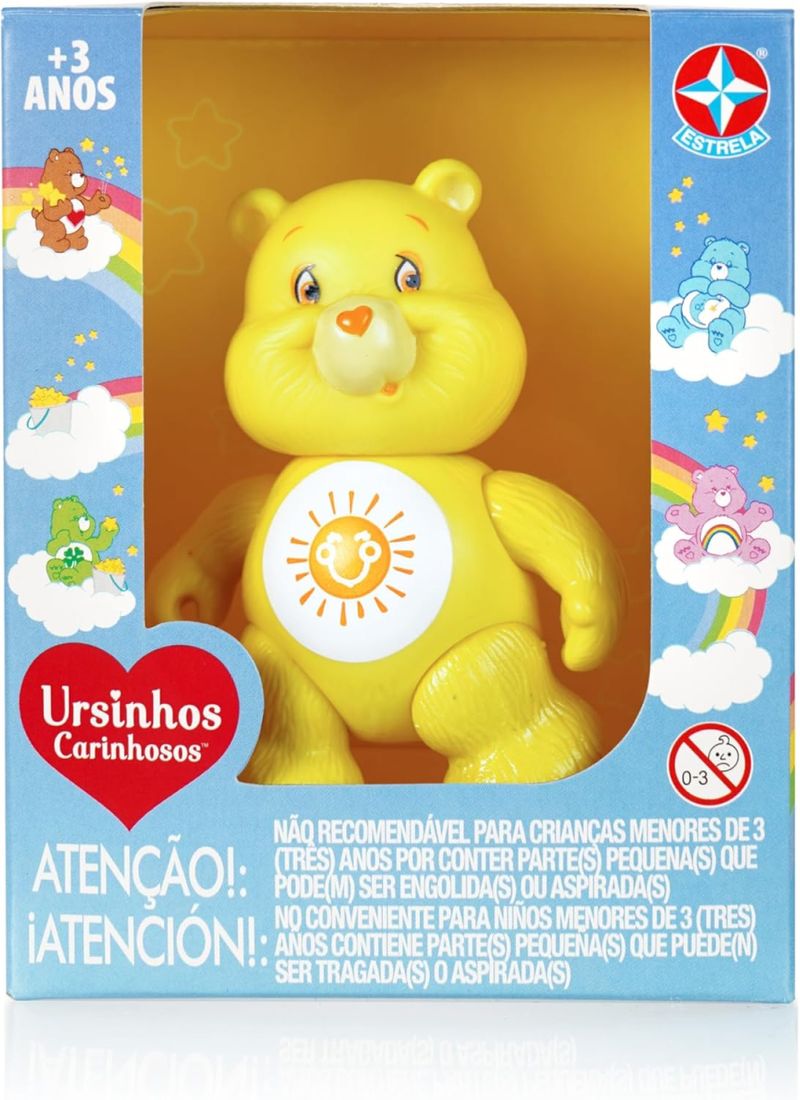 Prepare-se para brilhar! O Ursinho Sol te espera para mais uma aventura pelo Reino do Carinho. Com seu sorriso radiante, ele é o companheiro perfeito para quem busca momentos de diversão. Colecione todos os ursinhos e reconstrua o mundo mágico da sua infância. Uma coleção perfeita para quem ama a vida e a alegria! O modelo é o mesmo dos anos 80! Nostagia e diversão garantida!!