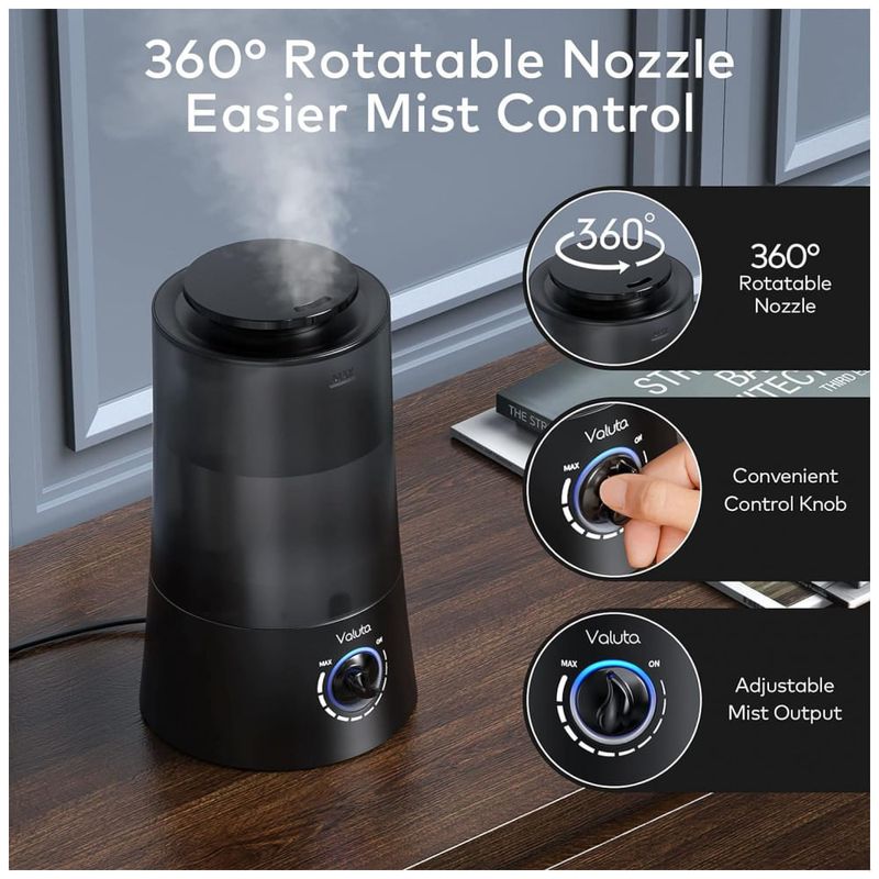 Bico 360 e controle de névoa ajustável Projetado com um botão de controle super simples, você pode ajustar o nível de saída de névoa de acordo com os diferentes espaços. O bico giratório 360 permite que você personalize a direção do fluxo de névoa para se adaptar ao seu ambiente e preferência.