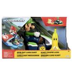 O Veículo Mario Kart Spin Out é perfeito para você recriar sua própria corrida! Ele é uma réplica do jogo Mario Kart!! Acompanha acessório de casca de banana e um carrinho que pode ser do Luigi ou do Mario. Para brincar, dê corda no carrinho, mas tome cuidado com a banana, ao bater nela, ele gira. A brincadeira ficará muito mais legal com o Mario Kart Spin Out! Resumindo: • O Veículo Mario Kart Spin Out é perfeito para você recriar sua própria corrida! • Ele é uma réplica do jogo Mario Kart!! • Acompanha acessório de casca de banana e um carrinho que pode ser do Luigi ou do Mario. • Para brincar, dê corda no carrinho, mas tome cuidado com a banana, ao bater nela, ele gira. • A brincadeira ficará muito mais legal com o Mario Kart Spin Out!