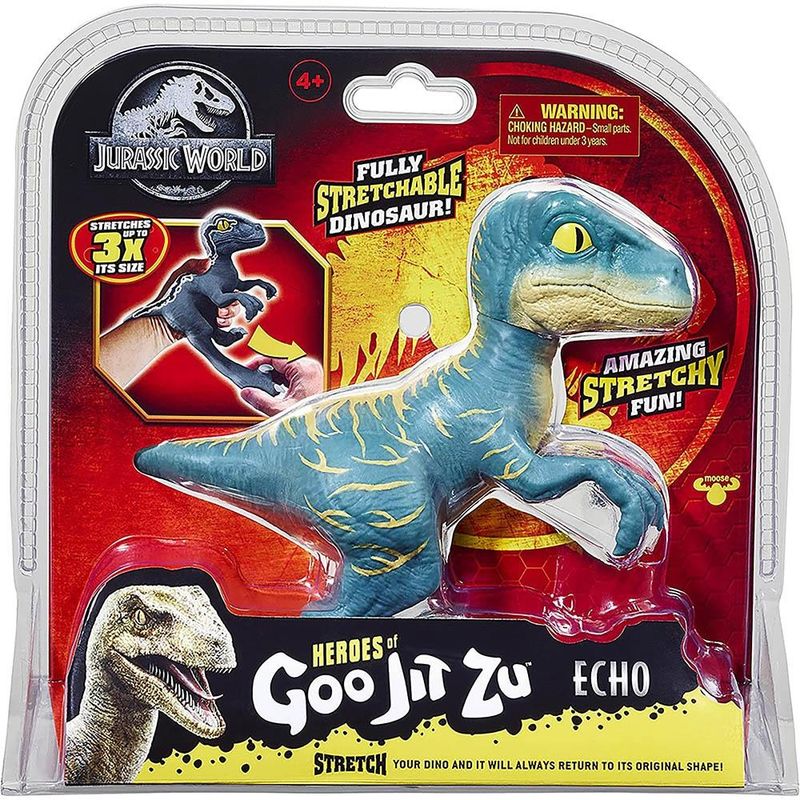 Os heróis Goo Jit Zu traz a você o novo Jurassic World Stretch. Elasticos, podem se esticar até 3 vezes, pegue e estique os braços e pernas, solte e ela retornará ao seu tamanho original. Heróis de Goo Jit Zu oferece às crianças uma nova maneira de brincar com bonecos, sem bagunça!