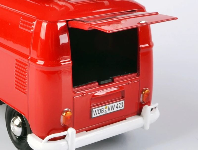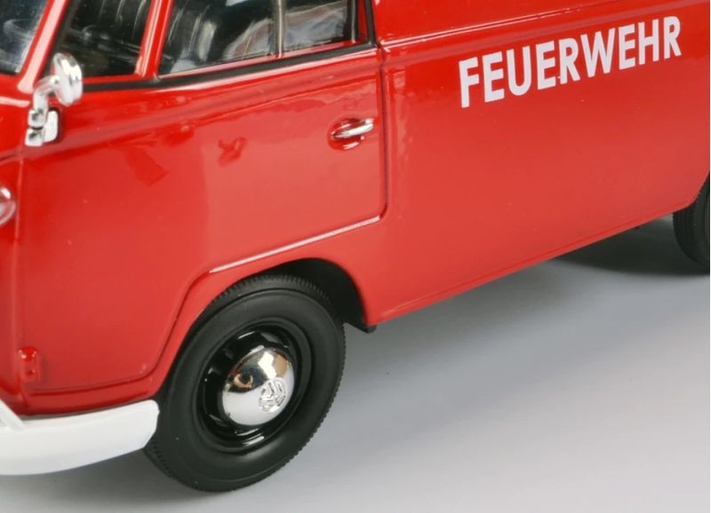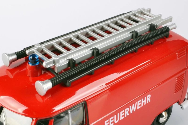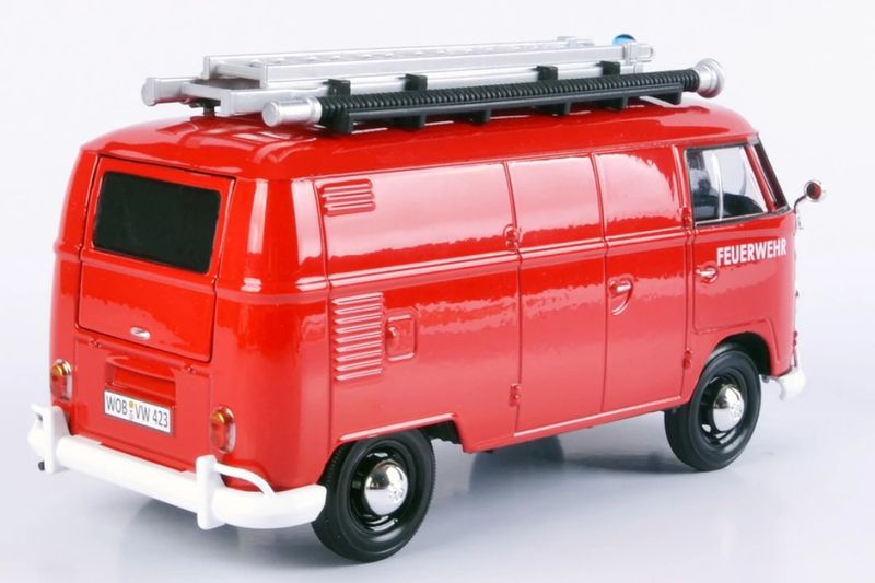 Volkswagen Type 2 (T1) Delivery Van FeuerwehrMarca do produto: Motormax.Escala: 1/24 (aproximadamente 18 cm de comprimento).Pneus de Borracha.Abre a Tampa Traseira.Miniatura em Metal com partes de plástico.
