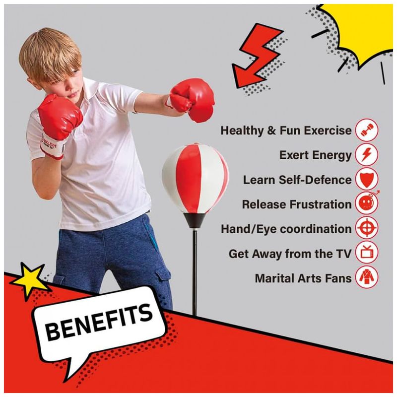 DIVIRTA-SE E MANTENHA AS CRIANÇAS ATIVAS com o kit de boxe whoobli! Este saco de pancada inflável para crianças é o único no mercado com as cores vibrantes do boxe americano, apresentando um design resistente e freestanding que suporta todas as brincadeiras das crianças. Feito em couro PU robusto e não tóxico, este saco reage aos golpes, voltando ao formato original para mais diversão! Além disso, o kit inclui luvas de boxe infantis, proporcionando horas de entretenimento saudável. Ideal para crianças cheias de energia, o saco com suporte imita equipamentos profissionais de boxe, incentivando movimentos ativos que são perfeitos para o desenvolvimento físico e coordenação motora. O saco possui altura ajustável entre 86 cm e 112 cm, adaptando-se ao crescimento dos pequenos lutadores de 3 a 10 anos. Seu design com base redonda sólida traz estabilidade e um cabo para facilitar o transporte, tornando-o perfeito para uso dentro ou fora de casa. Inclui também uma bomba para inflar com facilidade e manual completo para montagem rápida. Este é o presente ideal para aniversários e Natal, garantindo diversão e atividade física para meninos e meninas. Prepare-se para ver as crianças pedindo para usar as luvas e se exercitar diariamente! Com a qualidade whoobli, você tem a confiança de um produto seguro, durável e divertido para seu filho.