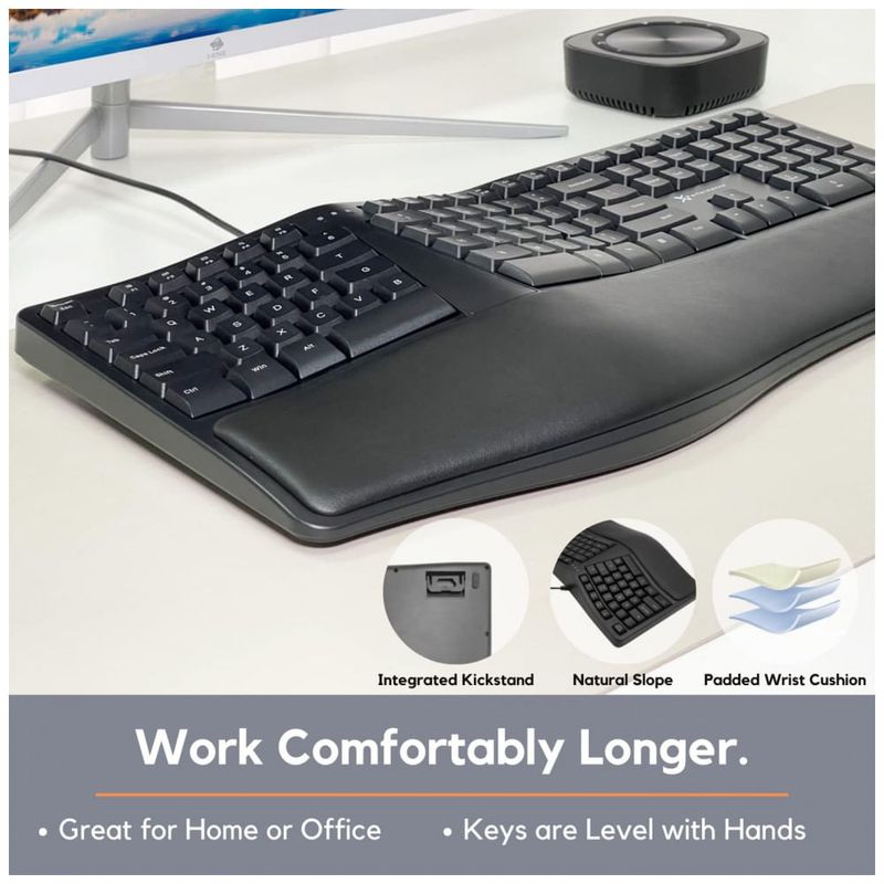 Sinta se melhor, trabalhe melhor Longas horas no computador podem ser difíceis, no entanto, temos uma solução. Com um design focado no usuário, nosso teclado dividido ergonômico ajudará você a conquistar sua carga de trabalho com menos desconforto no pulso.