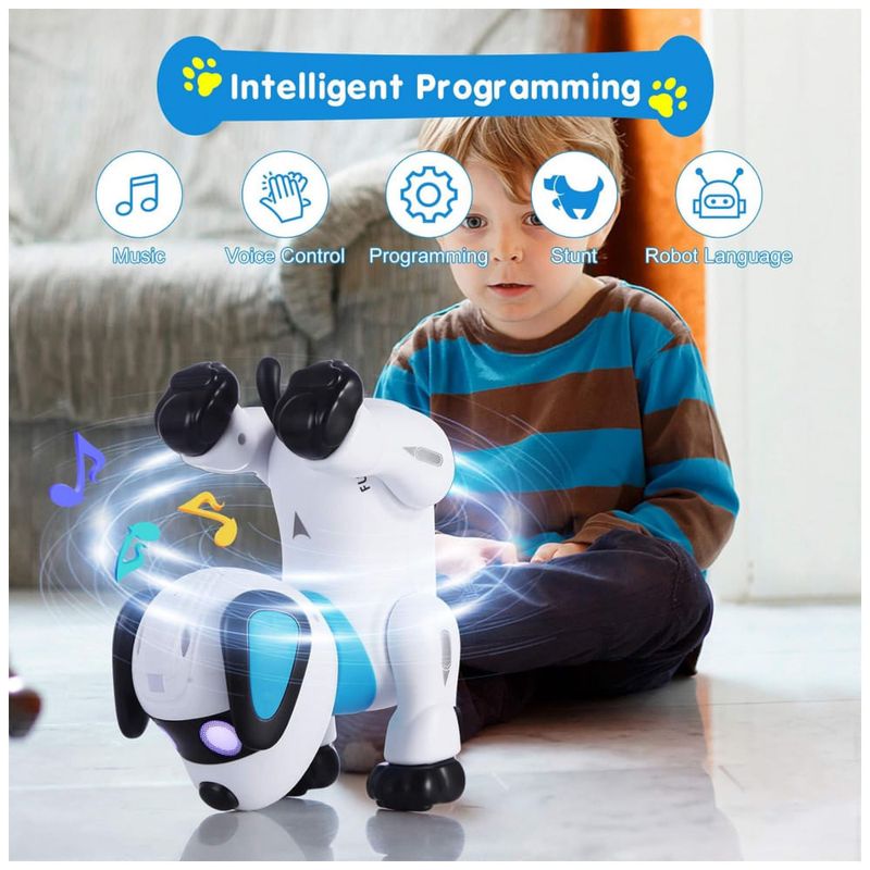 Presente perfeito para crianças pequenas Um cão robótico para crianças. Este filhote de cachorro robô inteligente é um cão de brinquedo emocionante, um presente de Natal ou aniversário para crianças meninos meninas 3 4 5 6 7 8 9 10 e acima. Será o bom companheiro do seu filho. Uma ótima opção para manter um cachorro se seus filhos são alérgicos ao cachorro real. Nós fornecemos 180 dias de reembolso ou substituição grátis, então qualquer problema, entre em contato conosco