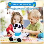 Bateria que economiza energia e durável O brinquedo de cão robô possui uma bateria recarregável embutida com 3,7 V 500 mAh incluída, baterias de controlador de 3,0 V incluídas. O cão robô inteligente proporcionará 2 horas de diversão após 2 horas de carga com USB. O cachorro de brinquedo entra no modo de hibernação após 90 segundos sem estar em uso, é necessário reabri lo para ativá lo, o que preservará a bateria.