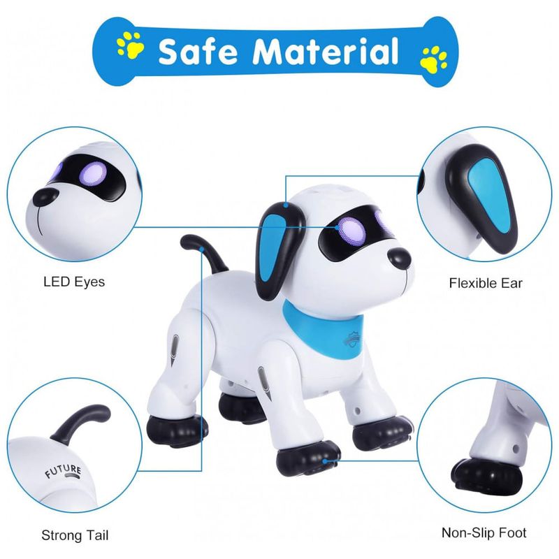 Material de alta qualidade Membros flexíveis aumentam a destreza e a fluência dos movimentos deste pequeno robô. O brinquedo robô para cães para crianças é feito de plástico ABS resistente e inquebrável para garantir um desempenho duradouro, e não tóxico. Com um corpo liso e redondo, sem cantos agudos, totalmente para as crianças.