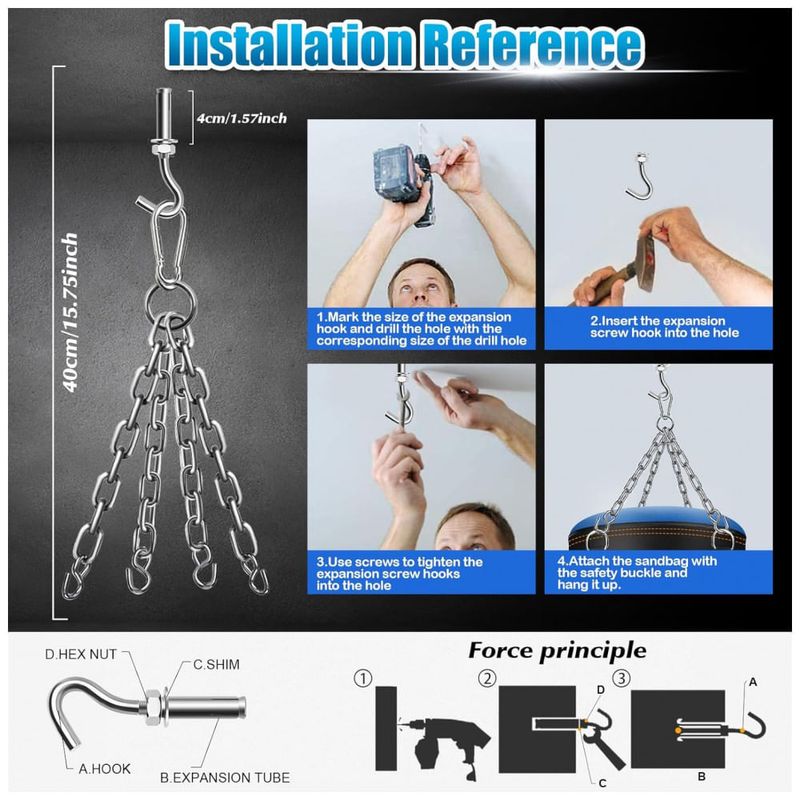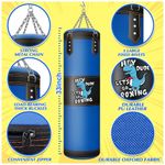 Componentes Inclusos: Saco de pancadas infantil de 82 cm (vazio), luvas de boxe de 170 g, corrente para pendurar, gancho de expansão, mosquetão e bandagens para as mãos