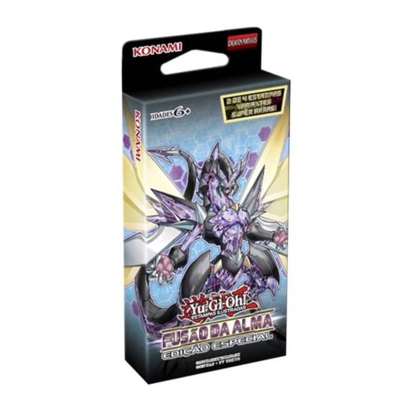 A Edição Especial de Fusão da Alma oferece aos Duelistas um excelente conteúdo por um ótimo custo-benefício! Além de 3 pacotes da Fusão da Alma, cada caixa garante 1 de 2 estampas variantes Super Raras, e 1 de 2 estampas Super Raras que serão lançadas na próxima coleção durante o verão de 2019!